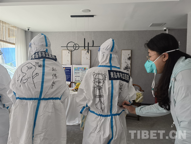 中國西藏網(wǎng)訊 青島援藏醫(yī)療隊自8月17日進藏以來, 隊員們無論工作多累多難、高原反應(yīng)有多難受,都沒有一句怨言,依然堅持在西藏自治區(qū)日喀則市戰(zhàn)“疫”一線。工作之余,來自青島市市立醫(yī)院本部ICU的鐘翔宇發(fā)揮出了她的“隱藏技能”——在醫(yī)療隊的“大白”身上畫上漫畫,用表情包背到身上的方式給隊友們加油鼓勁兒。身著漫畫“戰(zhàn)袍”的隊員們斗志昂揚,朝氣蓬勃,互相鼓勵幫助,完成了一天天的工作任務(wù)。而這些古靈精怪的漫畫,在戰(zhàn)“疫”一線也成了一道靚麗的風景線。(中國西藏網(wǎng) 記者/次旦拉姆 由桑珠孜區(qū)融媒體中心供稿)