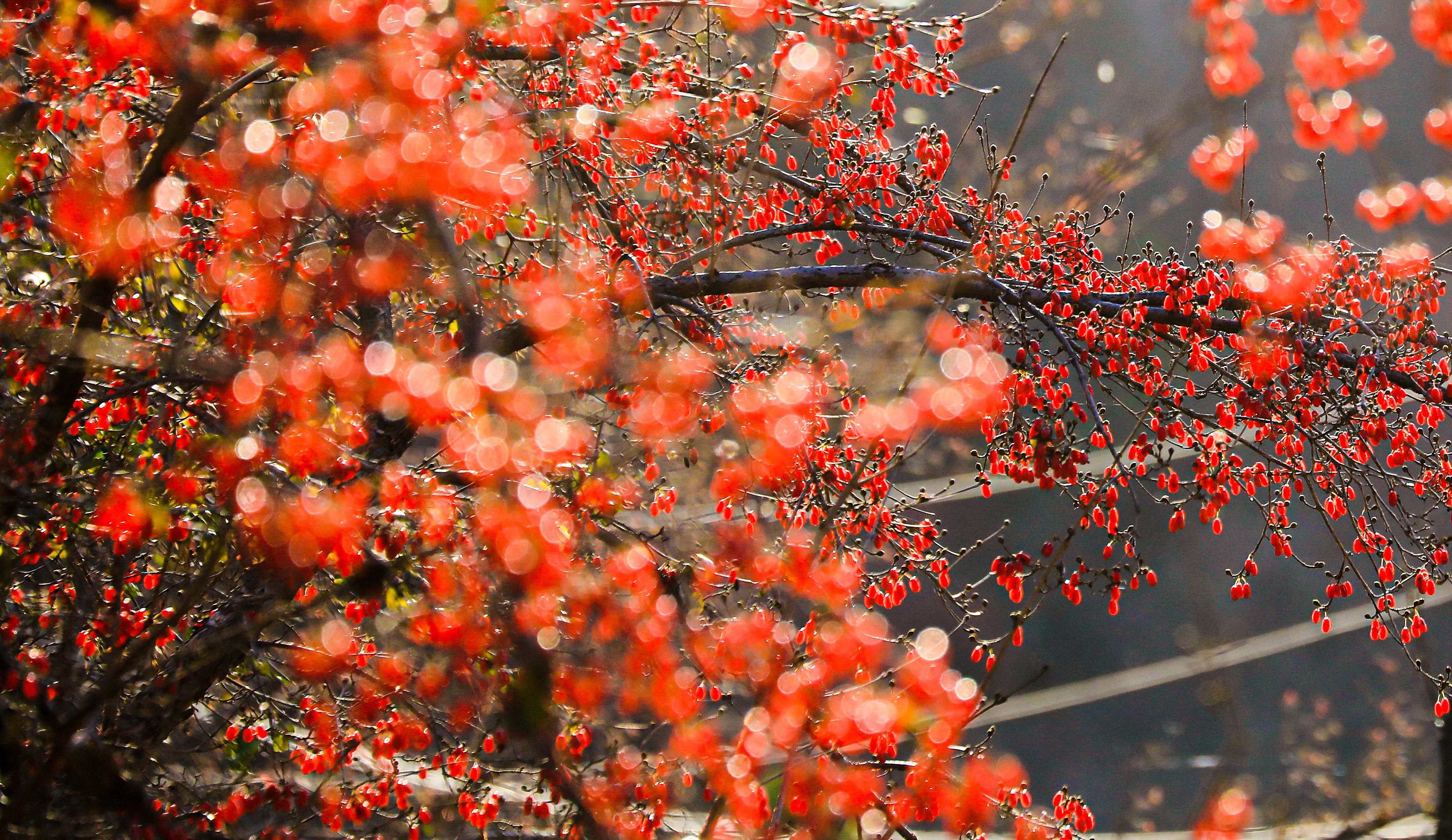 金秋時(shí)節(jié),漫山遍野的山茱萸。