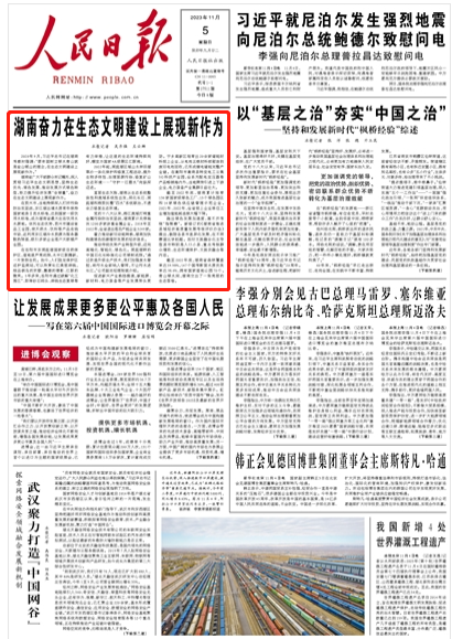 人民日報頭版頭條聚焦丨湖南奮力在生態(tài)文明建設上展現新作為