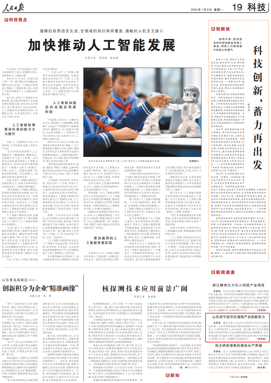 人民日?qǐng)?bào) | 山東濟(jì)寧經(jīng)開(kāi)區(qū)增強(qiáng)產(chǎn)業(yè)創(chuàng)新活力
