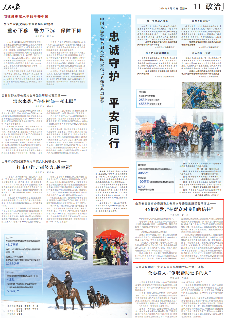 人民警察隊伍是一支有著光榮傳統(tǒng)和優(yōu)良作風(fēng)的隊伍,是一支英雄輩出、正氣浩然的隊伍,也是和平年代犧牲最多、奉獻(xiàn)最大的隊伍。廣大民警矢志不渝做黨和人民的忠誠衛(wèi)士,為建設(shè)更高水平的平安中國、法治中國不懈努力。