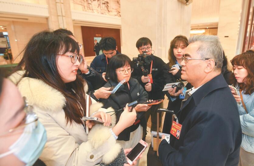 委員在住地華山飯店接受記者采訪。 本報(bào)記者 王詩宇 趙亞玲 邵丹 攝