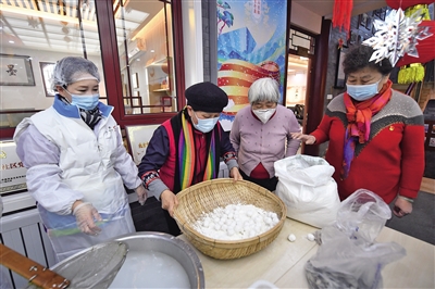 為解決市民扎堆排隊(duì),便宜坊集團(tuán)今年鋪設(shè)了約100個(gè)錦芳元宵銷售網(wǎng)點(diǎn),并首次進(jìn)駐物美超市。京味兒十足的護(hù)國寺小吃總店繼續(xù)堅(jiān)持“現(xiàn)搖現(xiàn)售”,不但推出了巧克力、黑芝麻等傳統(tǒng)口味元宵,還上新了流心榴蓮餡,增加電話預(yù)訂、線上購買業(yè)務(wù)。老字號又一順專門用火龍果調(diào)色,制作出巧克力餡、玫瑰紅的限量版元宵。峨嵋酒家推出了用蔬菜汁、水果汁調(diào)出的“五彩”湯圓。華天集團(tuán)微信公眾號推出“猜燈謎”互動(dòng)小游戲,猜出謎底可獲得不同面值會員商城優(yōu)惠券。