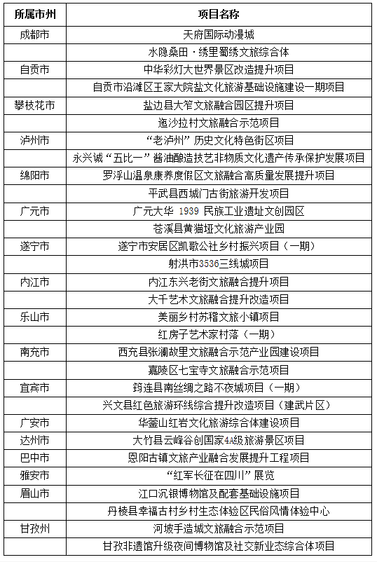 2022年度四川省文化旅游融合示范項(xiàng)目擬支持名單如下: