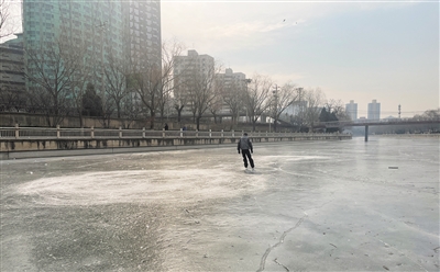 2月5日,南護城河,一位市民在滑冰。新京報記者 徐巧麗 攝