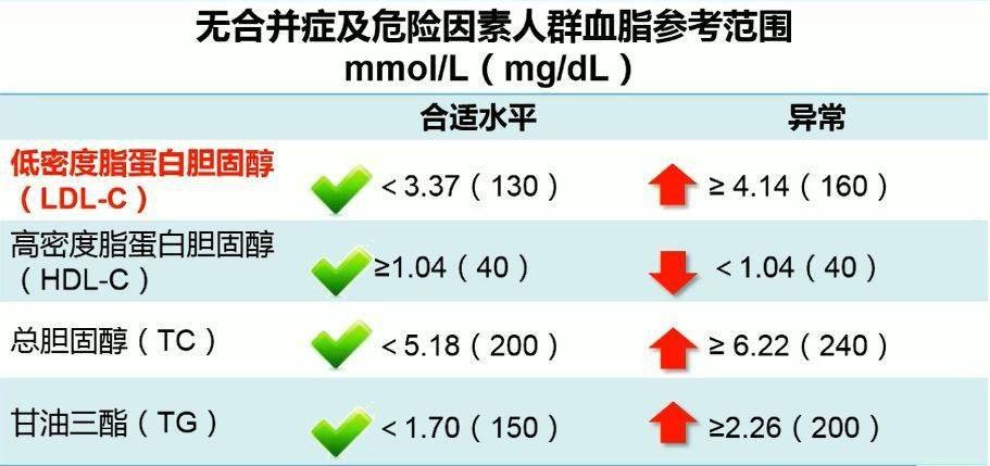 總膽固醇是指血液中膽固醇的總含量,該指標(biāo)升高則表示容易形成動脈粥樣硬化斑塊,導(dǎo)致心腦血管疾病。高密度脂蛋白膽固醇,能將沉積在血管中的膽固醇運(yùn)回肝臟,變成膽汁隨糞便排出體外,可以降低患心臟病等心血管疾病的風(fēng)險,因而也被稱為血管的“清道夫”,數(shù)值越高越好。低密度脂蛋白膽固醇,被認(rèn)為是動脈粥樣硬化發(fā)生和發(fā)展的“罪魁禍?zhǔn)住?,它?fù)責(zé)將肝臟中的膽固醇轉(zhuǎn)運(yùn)到身體的各個組織細(xì)胞,但卻不負(fù)責(zé)將送出的膽固醇收回,這個指標(biāo)越高,發(fā)生心腦血管疾病的風(fēng)險就越大。甘油三酯是人體脂肪的組成部分,可以為人體儲存和供給能量。甘油三酯升高,往往與飲食有關(guān),甘油三酯指標(biāo)升高嚴(yán)重時會誘發(fā)急性胰腺炎。