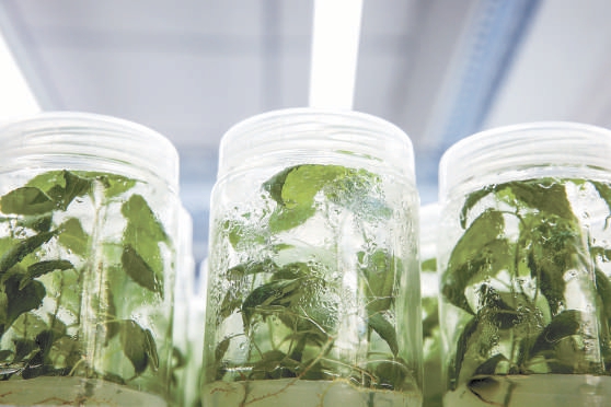 實驗室中扦插的古毛白楊枝條。 何建勇攝