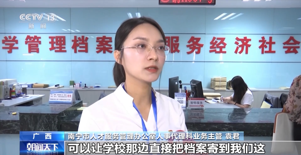南寧市人才服務(wù)管理辦公室人事代理科業(yè)務(wù)主管 袁君:可以讓學(xué)校那邊直接把檔案寄到我們這,我們進(jìn)行一個(gè)免費(fèi)的托管,不需要學(xué)生本人再提供任何的工作材料到現(xiàn)場(chǎng)或者是在網(wǎng)上再辦理任何檔案接收手續(xù)。