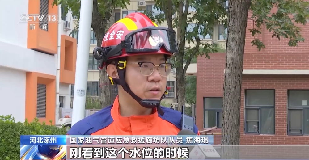 國家油氣管道應(yīng)急救援廊坊隊(duì)隊(duì)員 焦海琨:剛看到這個(gè)水位的時(shí)候,心里面其實(shí)也是很緊張的。根本看不清楚,水很渾濁,每下一步,踩實(shí)了以后再走下一步。