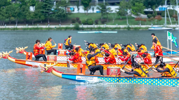 據(jù)了解,早在2021年,南京市體育集團(tuán)與江寧開發(fā)區(qū)共同打造的國家級水上運(yùn)動(dòng)項(xiàng)目——帆船訓(xùn)練基地落戶九龍湖國際企業(yè)總部園。今年端午節(jié)當(dāng)天,第二十屆南京市外商投資企業(yè)龍舟邀請賽在江寧百家湖拉開戰(zhàn)幕,在寧外企揚(yáng)子巴斯夫、菲尼克斯電氣、西門子數(shù)控、舍弗勒等16支參賽隊(duì)伍激情揮槳、奮勇爭先。