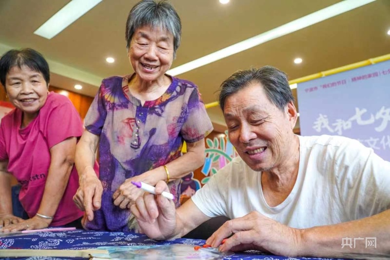 現(xiàn)場,老人們在海曙區(qū)橫街鎮(zhèn)成人文化技術(shù)學(xué)校教師的介紹下,了解七夕節(jié)的來歷和意義,并體驗(yàn)“穿針乞巧”、團(tuán)扇制作。此外,轄區(qū)青少年也一起來參加活動,在豐富暑期生活的同時,與爺爺奶奶們共同感悟傳統(tǒng)文化的魅力。