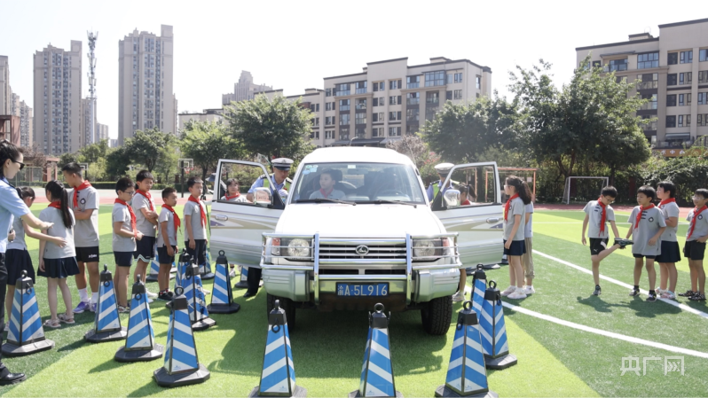 9月8號上午,重慶市公安局交巡警總隊會同兩江新區(qū)公安分局民警走進(jìn)兩江新區(qū)金州小學(xué)校,針對三、四年級的1000余名師生及家長,圍繞認(rèn)識交通標(biāo)志、違規(guī)乘坐共享單車的危害、乘坐公共交通工具注意事項、一盔一帶、汽車有盲區(qū)、酒后駕車要不得等主題,通過沉浸式體驗、有獎問答、安全小實驗等形式讓孩子們提升自我防護(hù)能力和意識。
