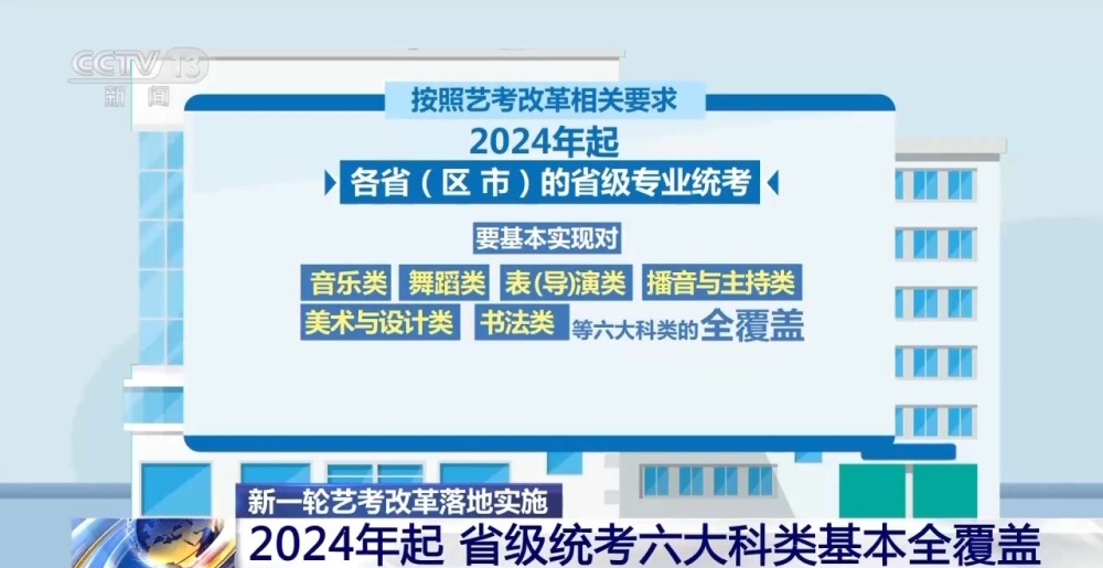 按照藝考改革相關(guān)要求,2024年起,各?。▍^(qū)、市)的省級專業(yè)統(tǒng)考要基本實(shí)現(xiàn)對音樂類、舞蹈類、表(導(dǎo))演類、播音與主持類、美術(shù)與設(shè)計(jì)類、書法類等六大科類的全覆蓋。戲曲類實(shí)行省際聯(lián)考。對于考試組織確有困難的個別科類,有關(guān)省份可通過省際聯(lián)考或“考評分離”等方式實(shí)施。據(jù)介紹,上海市已按照最新要求,對藝術(shù)類專業(yè)統(tǒng)考進(jìn)行了調(diào)整。