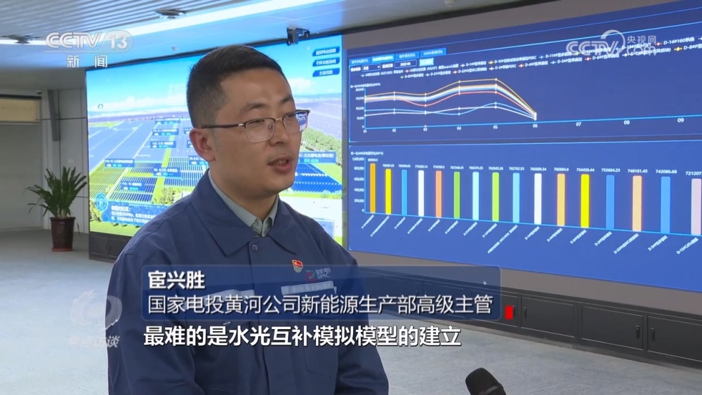 國(guó)家電投黃河公司新能源建設(shè)分公司黨委書(shū)記、副總經(jīng)理王倫:“怎么解決這個(gè)問(wèn)題呢?我們有多年水電開(kāi)發(fā)建設(shè)運(yùn)行的經(jīng)驗(yàn),是不是可以依靠水電這個(gè)老大哥,它本領(lǐng)強(qiáng)、能力大,把新能源小弟帶一帶?后來(lái)就猜想是不是可以實(shí)現(xiàn)“水光互補(bǔ)”,通過(guò)優(yōu)質(zhì)的水電帶動(dòng)相對(duì)能力比較差、波動(dòng)性、間歇性比較強(qiáng)的新能源,一塊共同健康發(fā)展。”