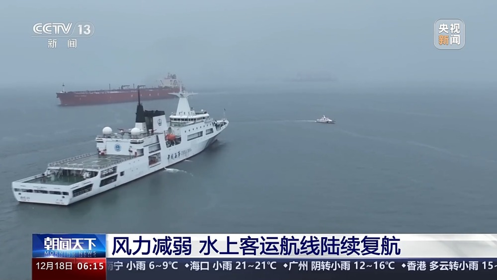 從12月17日12時(shí)起,根據(jù)海面風(fēng)力情況,廣東珠海市內(nèi)往返海島航線陸續(xù)復(fù)航,預(yù)計(jì)18日全部復(fù)航。江門川山群島海上客運(yùn)航線于12月17日下午陸續(xù)復(fù)航,汽車渡運(yùn)預(yù)計(jì)于12月18日復(fù)航。