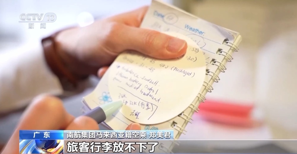 南航集團(tuán)馬來(lái)西亞籍空乘 黃佩儀:現(xiàn)在又到了春運(yùn)的時(shí)期,我們領(lǐng)資料箱的時(shí)候,特地問(wèn)一下能不能多給我們兩包,盡量保證每個(gè)睡覺(jué)的旅客,前面都有這樣一個(gè)小紙貼。