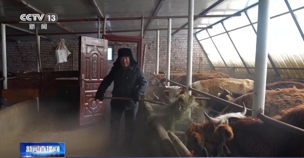 記者來到另一戶村民胡倫巴依·阿依普家的牲畜暖圈,他正在為牲畜添加草料。雖然外面寒意襲人,但暖圈里很暖和。