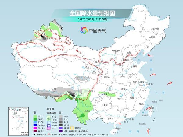 后天,內蒙古東北部、黑龍江東南部、吉林東部、新疆北部和南疆西部山區(qū)高海拔地區(qū)、西藏北部和東南部、青海西部等地部分地區(qū)有小到中雪或雨夾雪,其中,吉林東部、新疆北疆北部等地部分地區(qū)有大雪,局地暴雪。內蒙古東南部、黑龍江南部、吉林中西部、遼寧中東部、西藏東南部、云南西部和南部、河南中南部、安徽大部、江蘇中南部、湖北大部、江西中北部、湖南北部和東部、重慶、四川東部、貴州北部和東南部、廣西中西部、廣東北部等地部分地區(qū)有小到中雨,其中,遼寧東部、河南南部、安徽北部、湖南西部等地局地有大雨。