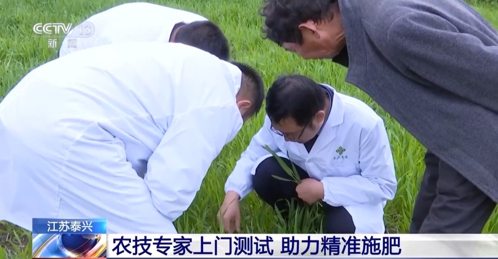 在江蘇泰興市,農技專家來到田間地頭,開展測土配方、土壤酸堿度測試、指導農戶精準施肥等工作。