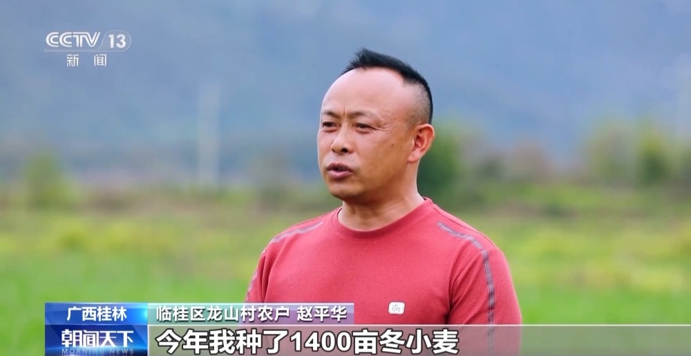 臨桂區(qū)龍山村農戶 趙平華:今年我種了1400畝冬小麥,現(xiàn)在進入抽穗期,4月中旬進入揚花期,接下來我要加強管理,爭取今年有個好收成。