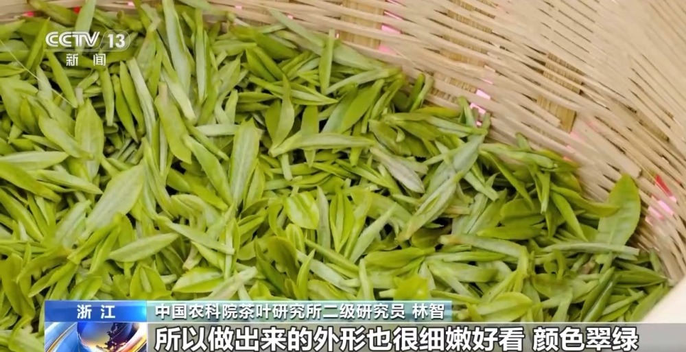 中國農科院茶葉研究所二級研究員 林智:所以它有幾個特點,第一個就是好看,為什么說好看呢,因為春天茶的芽葉比較細嫩,所以也比較金貴,做工一般都比較講究,做出來的外形也很細嫩好看,顏色翠綠。