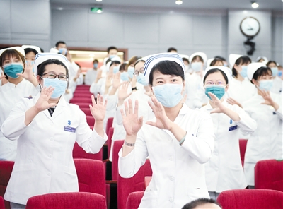 5月11日,北京大學(xué)第三醫(yī)院舉辦紀(jì)念南丁格爾誕辰200周年暨歡迎援鄂護(hù)士返崗活動(dòng)?;顒?dòng)中,對(duì)優(yōu)質(zhì)護(hù)理服務(wù)先進(jìn)集體、十佳護(hù)士等進(jìn)行了表彰。全體醫(yī)護(hù)人員重溫南丁格爾誓言,并用手語舞蹈《聽我說謝謝你》,表達(dá)對(duì)醫(yī)護(hù)人員崇高的敬意。本報(bào)記者張丹 特約記者仰東萍攝影報(bào)道
