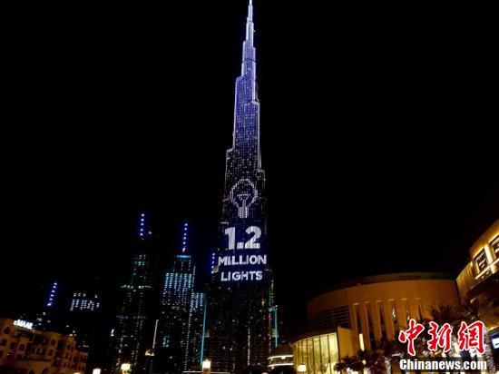 世界最高的“募捐箱”迪拜哈利法塔亮燈慶祝完成目標(biāo)