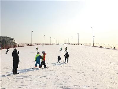 2月6日下午,位于大興區(qū)的龍熙滑雪場內,上百名滑雪者在此滑行。新京報記者注意到,許多滑雪初學者在雪道下方的緩沖區(qū)域內練習,一旁練習道上的滑雪者寥寥無幾?!霸谀膬憾家粯?。”一名在緩沖區(qū)域雪道上逆行、自稱沒有任何滑雪基礎的滑雪者稱。