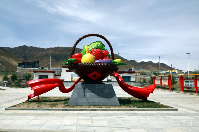 蔬菜籃雕塑立在阿亞村口(央廣網(wǎng)記者 唐磊 攝)