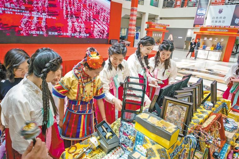 在吉林舉辦的“藏品入吉”展銷(xiāo)會(huì)上,游客在選購(gòu)日喀則特產(chǎn)。