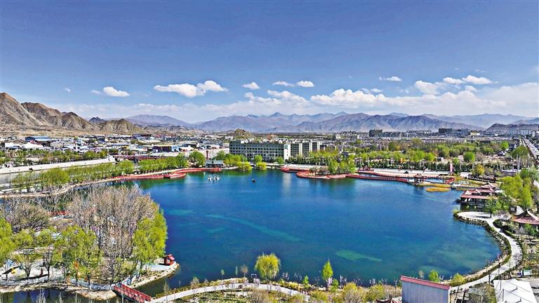 幽靜的貢覺(jué)林卡明珠湖,吉林援藏工作隊(duì)以“東情西韻、珠聯(lián)璧合”為主題進(jìn)行規(guī)劃設(shè)計(jì),與毗鄰的原班禪夏宮貢覺(jué)林卡形成整體,已經(jīng)成為日喀則城市旅游新景觀,市民休閑好去處;