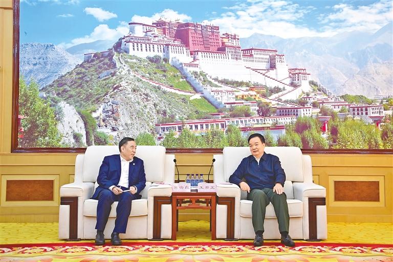 22日上午,自治區(qū)黨委書記王君正在拉薩與中國能建集團董事長宋海良率隊的赴藏考察團座談。