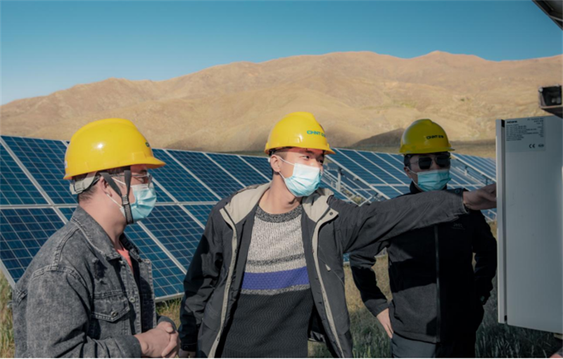 陶瑞勇(中)調(diào)研瓊結(jié)光伏發(fā)電項目運(yùn)營情況。曲杰供圖