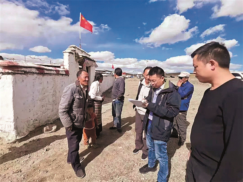 羅文兵(右三)在那曲市走入農戶,與群眾交流。