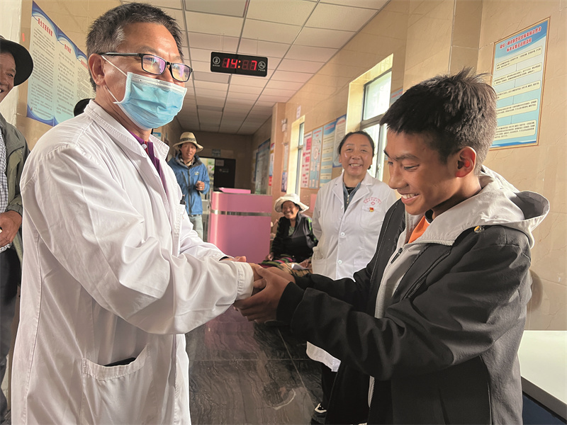 桑丁與張新輝醫(yī)生握手表達(dá)感謝。德吉卓瑪 攝