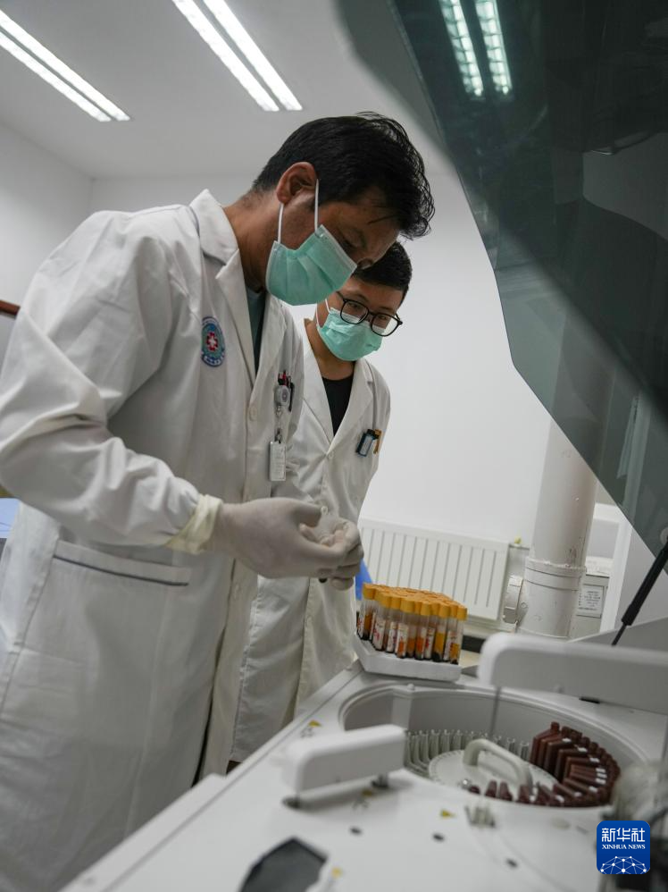 8月30日,林周縣強(qiáng)嘎鄉(xiāng)衛(wèi)生院醫(yī)生東智才讓使用生化分析儀檢測患者肝功能和腎功能狀況。新華社記者 晉美多吉 攝