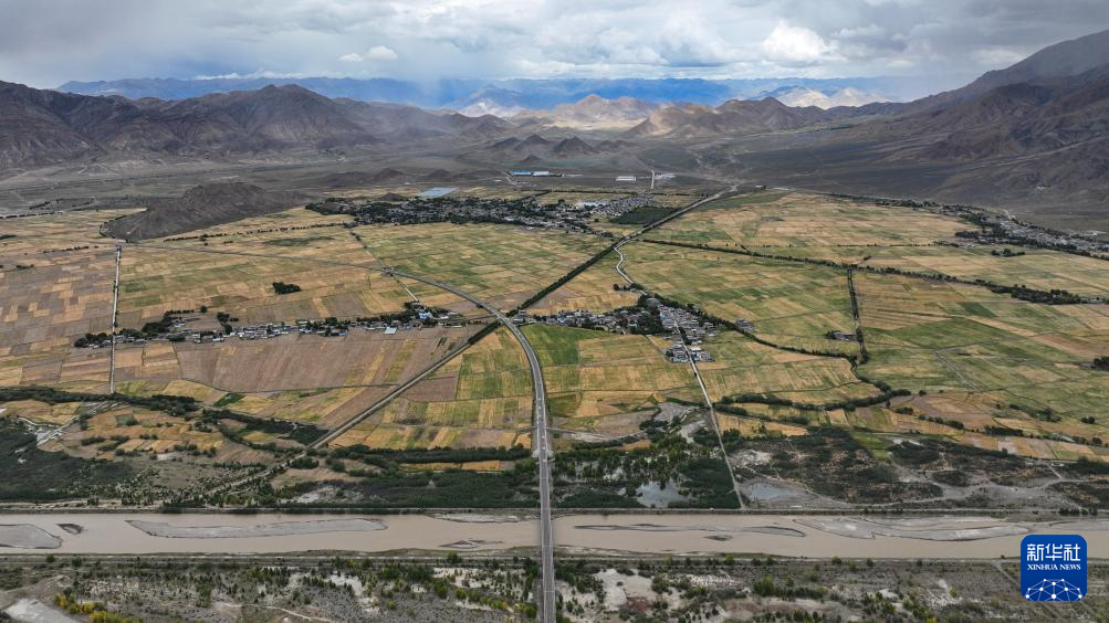 從空中俯瞰西藏拉薩至日喀則高等級(高速)公路南木林段(9月11日攝,無人機(jī)照片)。