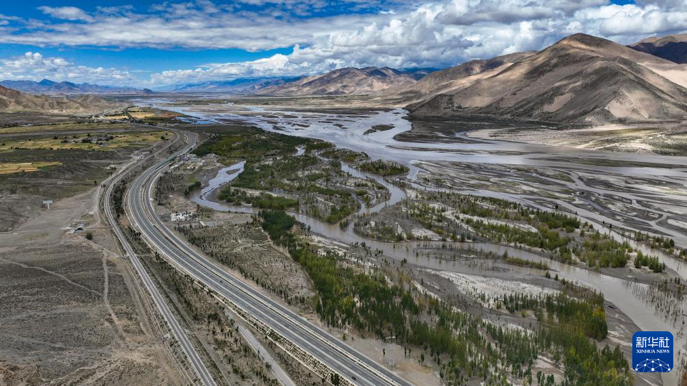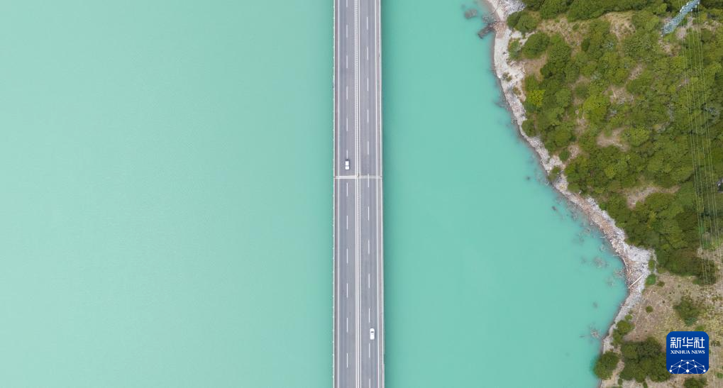 橫跨在西藏林芝市境內(nèi)尼洋河上的林芝至拉薩高等級(高速)公路(9月5日攝,無人機(jī)照片)。