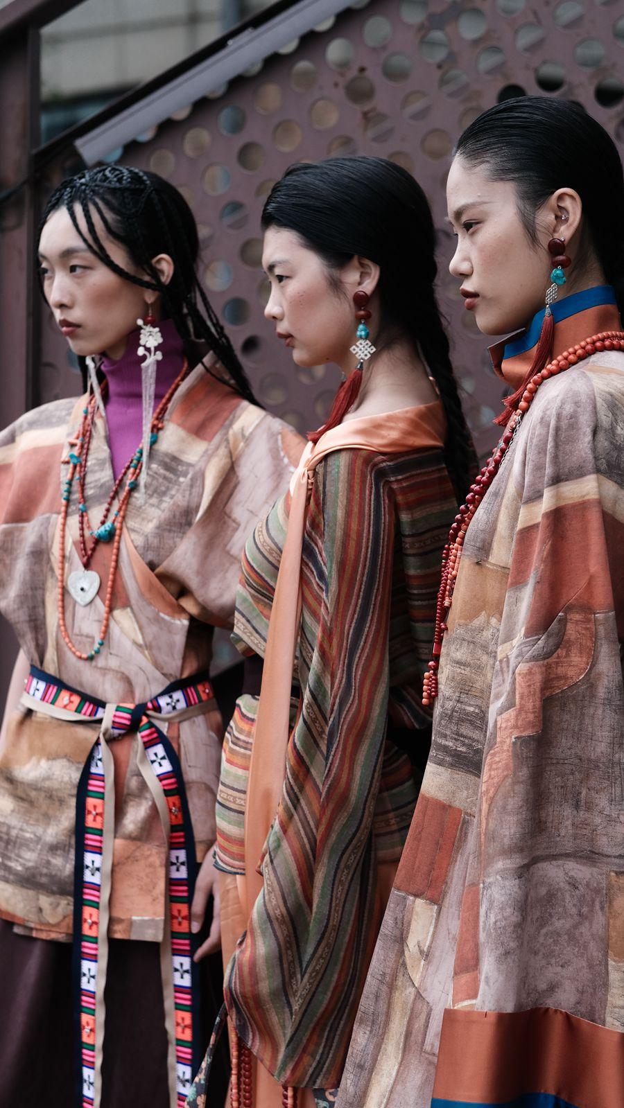 以馬乖在中國國際時裝周的發(fā)布產(chǎn)品為例,連續(xù)多季深根民族文化的傳承與創(chuàng)新,在跟隨株洲援藏工作隊進(jìn)入扎囊縣后,馬乖開始深入發(fā)掘藏族服飾與時尚消費的融合創(chuàng)新,跟其他設(shè)計師借鑒少數(shù)民族元素做新產(chǎn)品的初衷不同,素白所呈現(xiàn)的新款背后是整個團(tuán)隊研發(fā)的藏族非遺產(chǎn)品的動態(tài)活化過程,氆氌之鄉(xiāng)的“經(jīng)濟(jì)產(chǎn)品”是馬乖展開文化元素呈現(xiàn)后的落點,共建面料研發(fā)中心,將手工藝面料再造作為時尚服飾的亮點,研發(fā)新產(chǎn)品,提質(zhì)文化成果的經(jīng)濟(jì)轉(zhuǎn)化。觀察素白發(fā)布的往季產(chǎn)品,不難發(fā)現(xiàn),精粹歷史文化遺產(chǎn)、復(fù)興民族手工藝、打造時尚融合新品是品牌發(fā)展常態(tài),從大力發(fā)展植物染到玫瑰纖維的研發(fā)和使用,馬乖一直以設(shè)計之力、品牌影響在為消費者尋找更適合中國人自己的時尚發(fā)展模型。