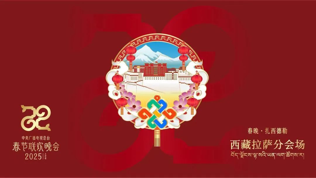 據(jù)介紹,總臺2025年春晚西藏拉薩分會場標識以“春晚·扎西德勒”為主題,中心是布達拉宮與雪山,展現(xiàn)西藏風光;外形為圓,寓意團圓;四周融入長城紋樣,彰顯西藏與祖國不可分割。