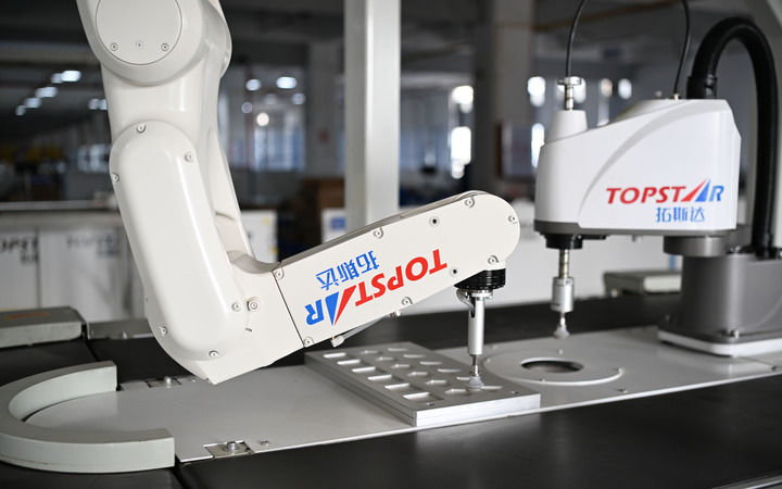 這是2025年3月25日在位于東莞的廣東拓斯達(dá)大嶺山生產(chǎn)基地拍攝的工業(yè)機(jī)器人。新華社記者 鄧華 攝