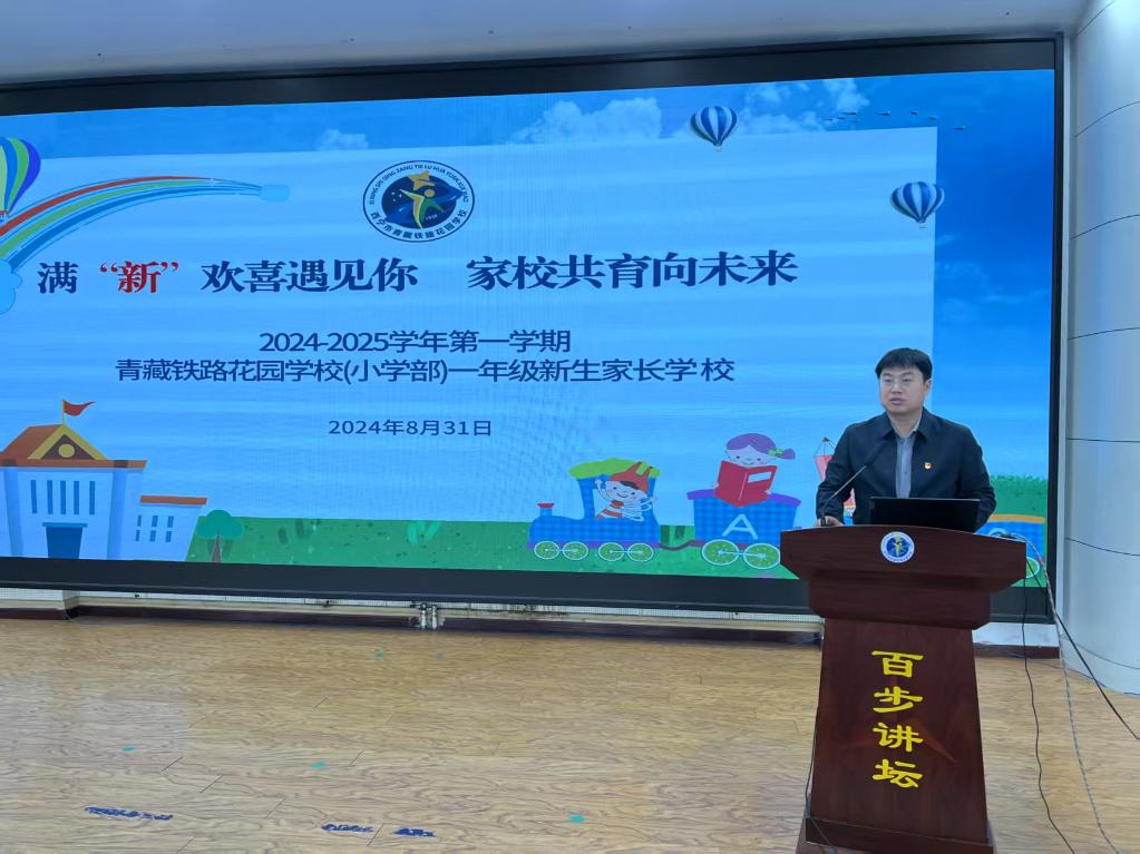 江蘇援青干部、青藏鐵路花園學(xué)校副校長(zhǎng)許健在學(xué)校召開家長(zhǎng)會(huì)。(受訪者供圖)
