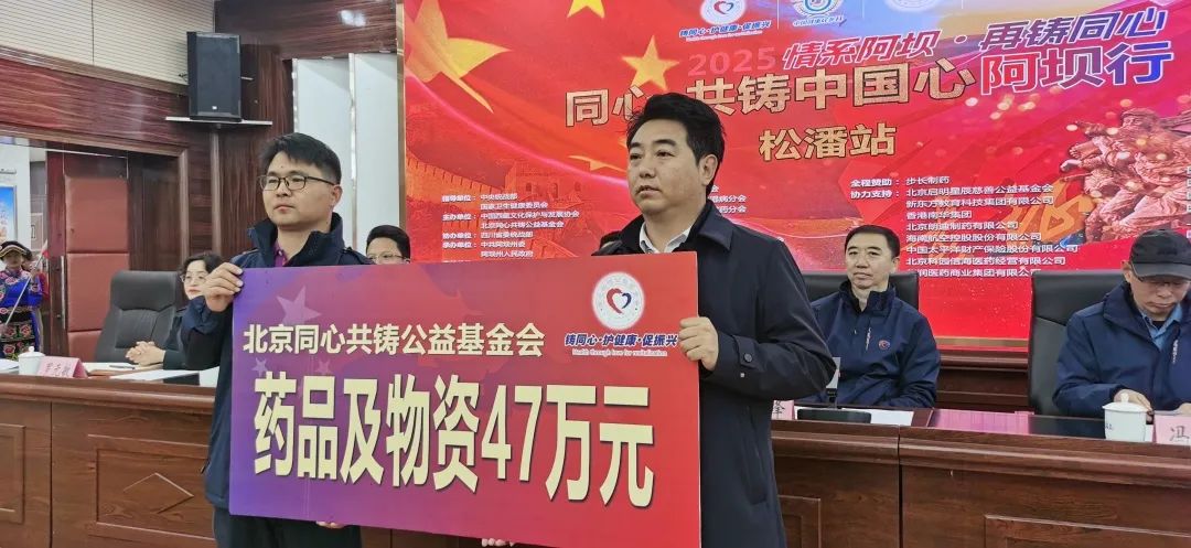 活動(dòng)現(xiàn)場(chǎng),“同心·共鑄中國(guó)心”組委會(huì)向松潘縣捐贈(zèng)了價(jià)值47萬(wàn)元的藥品及物資,為當(dāng)?shù)蒯t(yī)療資源注入新的力量。這些藥品將在后續(xù)醫(yī)療服務(wù)中發(fā)揮重要作用,幫助更多患者減輕病痛。捐贈(zèng)儀式后,何建華莊重地為“同心·共鑄中國(guó)心”組委會(huì)專(zhuān)家團(tuán)授旗,并宣布“同心·共鑄中國(guó)心”2025年阿壩行(松潘站)大型醫(yī)療公益活動(dòng)正式啟動(dòng)?,F(xiàn)場(chǎng)響起熱烈掌聲,承載著對(duì)此次公益活動(dòng)的美好期待。