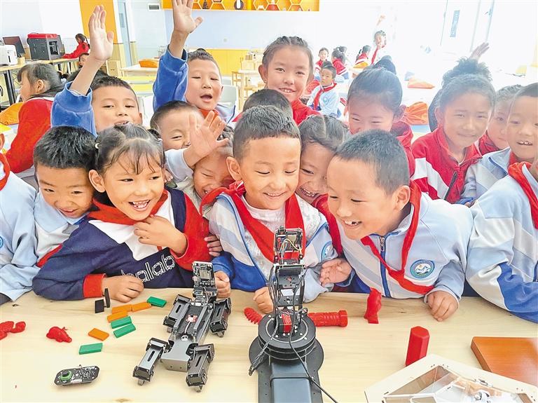 在桑珠孜區(qū)青島小學(xué)的科學(xué)課堂上,智能實(shí)驗(yàn)臺(tái)前圍滿了興致勃勃的孩子,他們手持 3D 打印筆,精心繪制著心中的“太空基地”。作為西藏首個(gè)啟動(dòng)“ STEM ”科學(xué)課程的地區(qū),這里不僅建成了全區(qū)首個(gè)小學(xué)科創(chuàng)實(shí)驗(yàn)室,還被教育部認(rèn)定為西藏唯一的全國(guó)“白名單”科創(chuàng)賽事基層組織單位?!耙郧埃⒆觽冎荒軓恼n本上了解實(shí)驗(yàn),現(xiàn)在能親手操作機(jī)器人、設(shè)計(jì)航天模型。”青島小學(xué)黨支部書記周杰介紹道。科創(chuàng)課程的開展,如同一把鑰匙,打開了孩子們創(chuàng)新思維和科學(xué)探索的大門,為高原青少年搭建起展示科學(xué)素養(yǎng)與創(chuàng)新能力的舞臺(tái),推動(dòng)當(dāng)?shù)亟逃聵I(yè)邁向新高度。