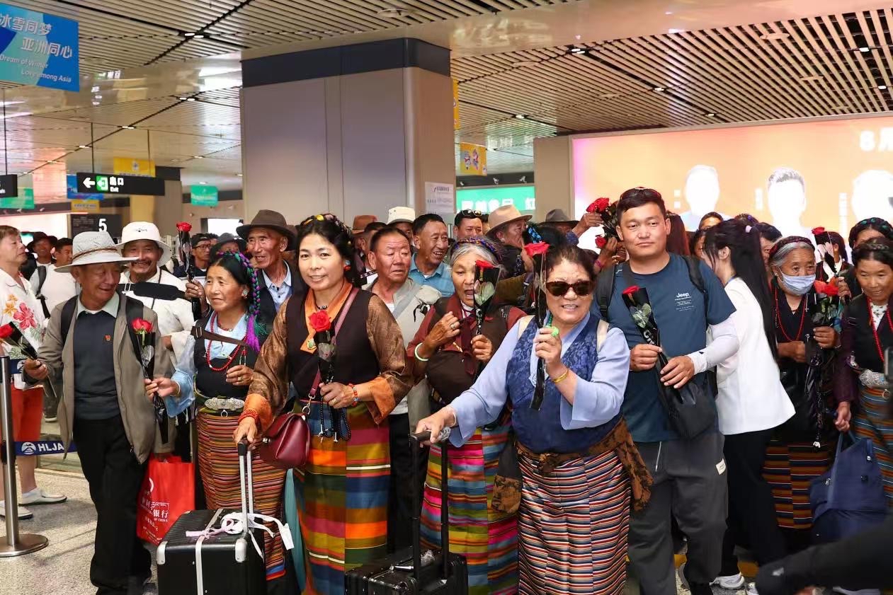 “第一次來到哈爾濱,像走進(jìn)了童話世界!”2023年12月,一架搭乘著近百名西藏游客的“龍藏號”旅游包機(jī)順利抵達(dá)哈爾濱,成為龍藏兩地常態(tài)化進(jìn)行文旅交往交流的開始。三年來,“龍藏號”旅游專列和包機(jī)雙向開行,1000余名龍江游客與藏族同胞共賞高原風(fēng)光,300余名藏族群眾走進(jìn)黑土地體驗(yàn)冰雪文化?!昂谕另灐ぱ┯蚯椤蔽乃噮R演、200余場青少年交流活動(dòng),讓“五個(gè)認(rèn)同”的種子深深扎根。