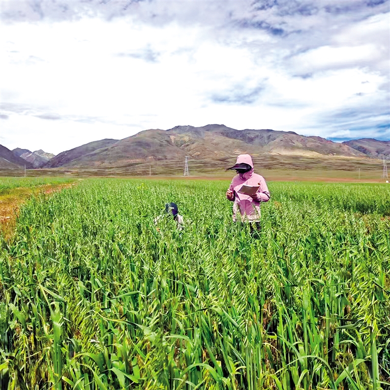 在陜西省援助擴(kuò)建的阿里地區(qū)飼草技術(shù)推廣中心試驗(yàn)基地,技術(shù)人員正在工作。陜西省第十批援藏工作隊(duì)供圖