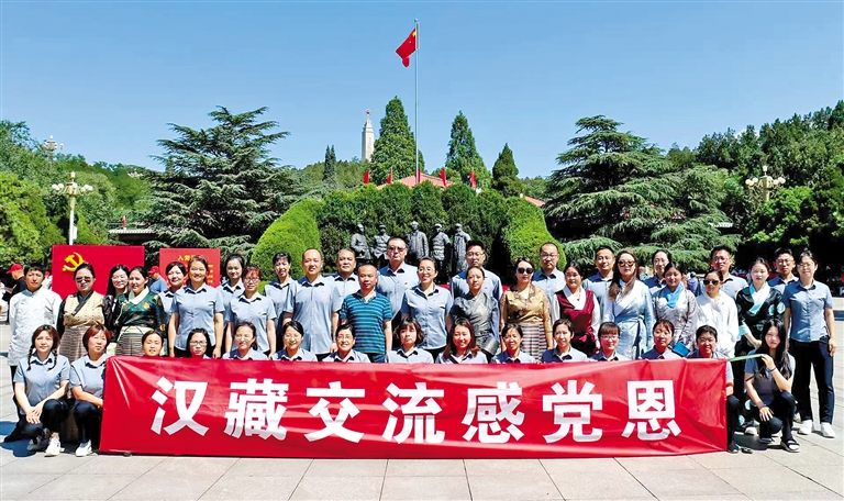 札達(dá)縣教師交流團(tuán)與石家莊市61中黨支部在西柏坡舉行黨日活動(dòng)。河北省第十批援藏工作隊(duì)供圖