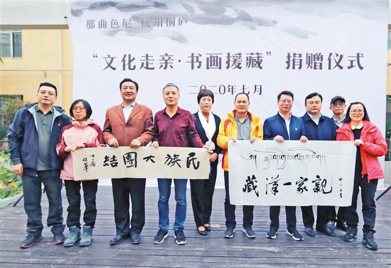 圖為2020年7月,那曲市色尼區(qū)“文化走親·書畫援藏”捐贈(zèng)儀式(資料圖片)。 記者 謝偉 攝