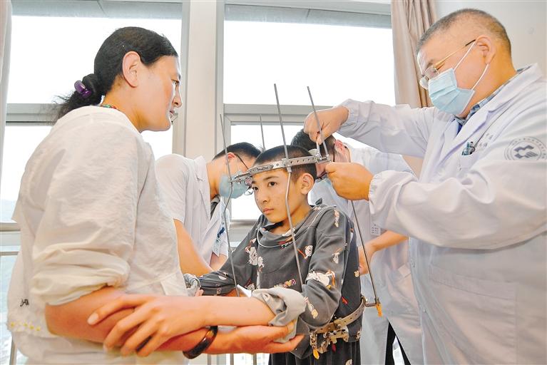 教育“走出去”取得成功的同時(shí),醫(yī)療幫扶也同樣創(chuàng)造了奇跡。2020年8月,經(jīng)援藏工作組對接協(xié)調(diào),蕭山區(qū)中醫(yī)院在色尼區(qū)啟動(dòng)“抬頭挺胸·重塑脊梁”圓夢行動(dòng)。曾因脊柱嚴(yán)重畸形、身高僅有135厘米的藏族小伙尼瑪扎西來杭免費(fèi)治療半年后,奇跡般地長高了22.3厘米。截至目前,已有25位像尼瑪扎西這樣的患者得到救治,挺起了人生的脊梁。