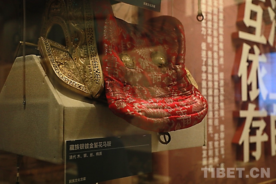 圖為“鑄牢中華民族共同體意識(shí)文物古籍展”茶馬互市文物展區(qū)內(nèi)的馬鞍 攝影:張藝彤